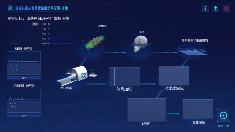 磁共振成像原理蕴涵了自然科学的重大成就和高新技术,学生学习时需要基于量子力学、电磁场等抽象的物理概念和数学模型,对微观物理世界进行想象、重构,公式复杂抽象概念多,一直是学生学习中的难点。除此之外,磁共振成像相关实验,因设备昂贵、实验成本高、间接测量多,实验教学无法实施。因此有必要把磁共振成像原理制作成虚拟仿真实验,来满足我校生物医学工程、医学影像技术、医学影像等专业人才训练需求。