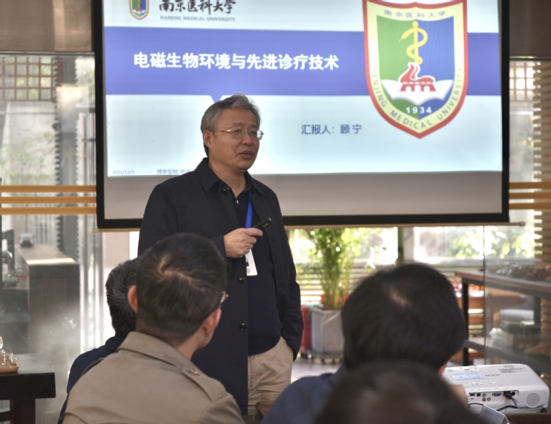2021年12月3日下午,电磁生物环境和先进诊疗技术研讨会在南京医科大学五台校区岁月阁会议室召开。此次会议由顾宁院士主持召开,受邀参会的有:附属脑科医院王菲教授、唐祥龙老师,附属常州第二人民医院倪昕晔副院长,康复医学院许光旭院长,孟殿怀主任,第一临床医学院季晶副院长,医学影像学院吴飞云副院长、王守巨教授,附属口腔医院章非敏教授,附属第二医院郭志睿教授、朱清毅教授,柏婷婷副研究员,基础医学院林凡教授,东南大学生物科学与医学工程学院葛盛教授,江苏澳格姆生物科技有限公司滕文臣总经理等;我院张慎忠书记、段磊副院长、胡本慧教授也应邀出席。