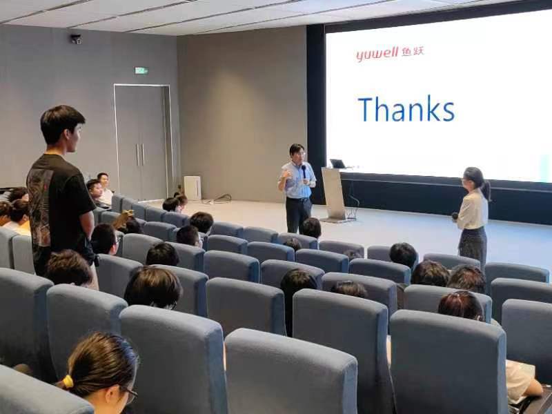 30日下午,工信院副书记潘国华、副院长段磊、教研办主任夏伟及相关学系教师带领21级生物医学工程和生物信息学系的学生参观了江苏鱼跃集团丹阳全球生产基地。在观看了鱼跃集团的宣传片并与鱼跃集团领导交流座谈后,鱼跃医疗战略部总裁、非独立董事郑洪喆,战略部总监王友爱,招聘负责人顾红磊分别为学生做了公司介绍、校招及管培计划讲解及行业讲解交流研讨。在鱼跃负责人的带领下,全体师生参观了办公、电商、生产装备及物流相关区域,全方位的了解医疗器械行业相关的各个板块。