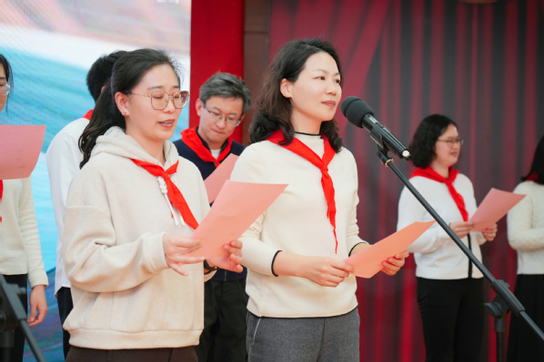 表彰大会后,“红色旋律 同心唱响” 主题红歌会精彩开唱。医学信息学系的张明智担任主持人。来自学院各党支部及研究生群体共7支参演队伍依次登台,用歌声重温峥嵘岁月,传递家国情怀。演出期间,各参演支部代表现场投票评选最喜爱节目,互动氛围热烈。整场红歌会主题鲜明、精彩纷呈,既展现了工信院师生昂扬向上的精神风貌,更让红色基因在歌声中代代相传。