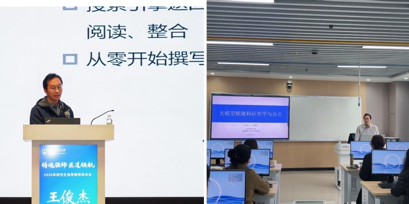 王俊杰副教授现为江苏省双创博士、江苏省智能医学工程学会理事,长期从事智能医学工程、大模型应用及AI赋能教育等方向研究。在系列培训中,他系统展示了AI技术在高效备课与微课制作、文献读写与科研绘图、行政文本处理与会议资料整理等方面的实操应用,所介绍的方法清晰、可复制性强,为全校教职工提升教学、科研与办公效能提供了切实可行的路径。相关培训已在研究生院、康达学院等部门开展,后期还将在江宁校区面向全体教职工开展系列授课。